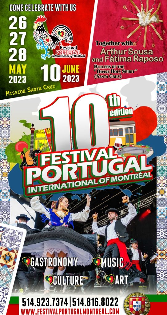 The Festival Portugal International of Montreal, together with Fátima Raposo and Arthur Sousa, butlers of the Divine Holy Spirit of Santa Cruz, present the 10th Edition of the Festival Portugal International de Montreal, which will take place on May 26, 27 and 28.