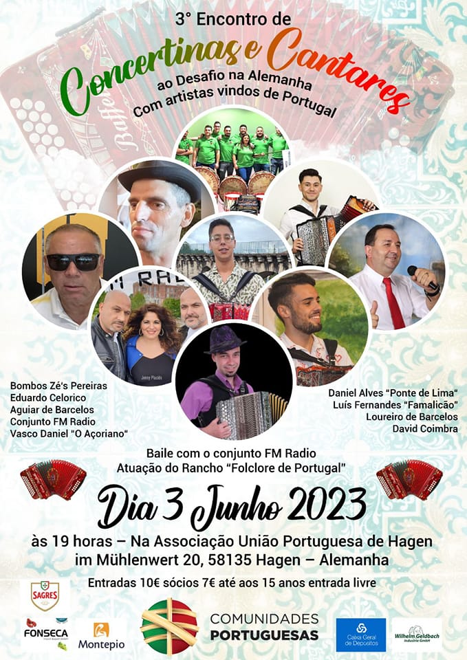 The Associação União Portuguesa de Hagen presents the 3rd Meeting of Concertinas and Challenge Songs, on June 3rd (Saturday), at 7pm.