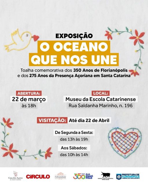 The Exhibition – The Ocean That Unites Us, event that will have its opening on March 22, at 6pm, at the Museu de Escola Catarinense, will come to celebrate the 350th Anniversary of Florianópolis and the 275th Anniversary of the Azorean Presence in Santa Catarina.