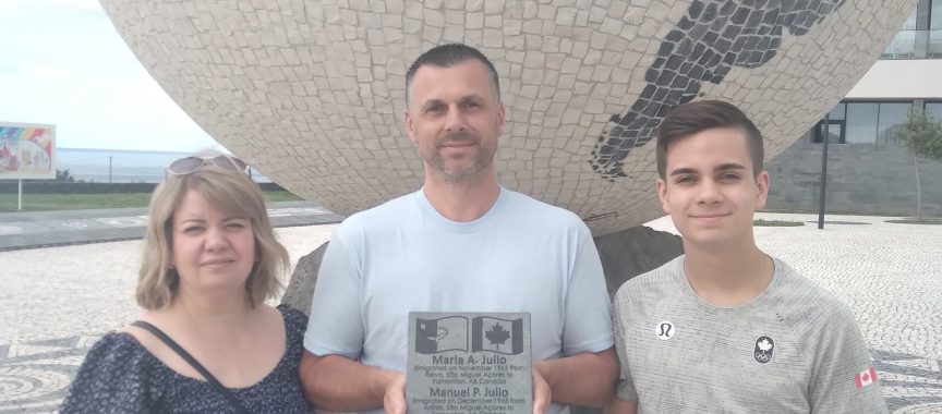 Yesterday (July 5), the Azorean Emigrants Association was able to attend a ceremony to place a stone at the Emigrant Square in honor of Maria and Manuel A. Julio, who emigrated from Relva and Arrifes, respectively, to Edmonton Alberta, Canada, where they raised their three sons: John, Daniel and Gary and welcomed five grandchildren.