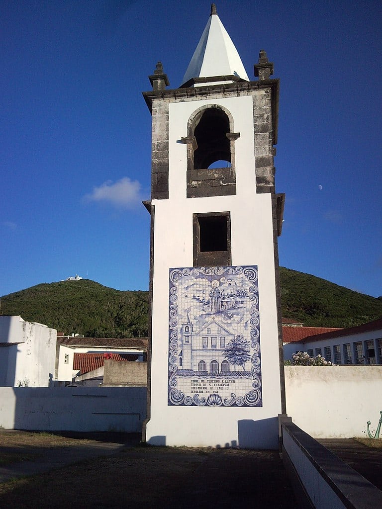 O património edificado nesta ilha resume-se à arquitetura religiosa, representada pela Igreja Matriz da vila de Santa Cruz, originária do século XVI, a qual possuiu alguns traços do barroco adquiridos depois, e pelas diversas ermidas e outras igrejas espalhadas pela ilha. Neste contexto de arquitetura religiosa, destaca-se a emblemática torre da Igreja de Nossa Senhora dos Anjos, a qual pertencendo à antiga Igreja de Nossa Senhora dos Anjos que integrava o convento de São Francisco, ainda permanece intacta, mesmo depois de a igreja ter sido demolida por ordem do liberalismo, em 1834.